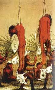 Но и это еще не конец. Во время финальной стадии будущему воину предстояло пробежать, словно лошади, целый круг с веревками, привязанными к его запястьям, и с головами все тех же буйволов на ногах. Такой невероятно мучительный и изнурительный забег продолжался до тех пор, пока новичок в изнеможении не падал на землю. Его там и оставляли, покуда его не приведет снова в себя Великий дух. Тот из кандидатов, который прошел через все стадии этого ада, объявлялся Верховным жрецом - правоправным воином племени. Теперь он с триумфом мог возвращаться домой к своим родителям.