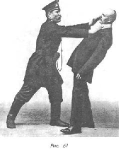 Поэтому при аресте захватные приемы надо делать так, чтобы противник не мог догадаться о вашем желании схватить его. Самое лучшее – приблизиться к нему, мирно разговаривая, и, подойдя совсем вплотную, застав противника врасплох, выполнить тот или другой прием.