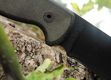 TAK, который ко мне попал, — версия из углеродистой стали 1095. Той самой углеродки, из которой сделаны все ранние ножи Майка и Джеффа. Не так давно фирма Ontario выпустила версию из более дорогой стали D2, однако, это уже не то же самое. Как пишет Jeff Randall: «Если тебе нужен нож, который не требует частой заточки и консервации, выбирай D2. Если для тебя важнее хорошие рабочие качества, бери 1095.» Не говоря уж о том, о чём писал многократно — обожаю ржавеющую углеродку. Есть в них траперская душа и неподдельный климат «old school», которого не хватает космическим сталям, придуманным маленькими японцами в подземных лабораториях огромных корпораций.