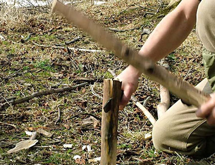 В SRK мы имели дело со спусками на 2/3 ширины клинка. TAK так имеет спуски от обуха, как в лучших кухонных ножах — это, в первую очередь, инструмент для реза. Спуски выше, чем в SRK, что не уменьшает его прочности, наоборот, это чертовски мощная «скотина». Поскольку длина TAKa позволяет рубить только небольшие ветки, чаще при колке он используется как клин. Толщина и вес делают такое использование лёгким и приятным. SRK сбалансирован на клинок — прекрасное решение для рубки. Меньший TAK имеет центр тяжести, заметно смещённый на рукоять. Благодаря этому нож более маневрен при тонких работах, а за счёт веса рубящие качества на уровне.