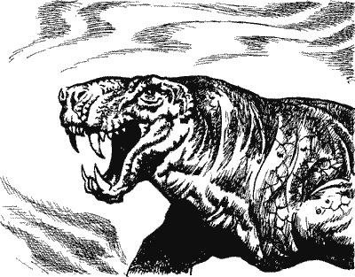 Под широкими вайями папоротников еще сейчас шла какая-то возня. Судя по всему, минут двадцать назад небольшая группа иностранцевий и их столь же огромных свирепых родственников — амалицкий, блуждая по прибрежным зарослям, наткнулась на медлительное стадо растительноядных парейазавров, бегемотоподобных ящеров; приземистых и крайне неуклюжих, покрытых мелкими костяными шишками. Я подоспел уже к моменту несомненного и полного торжества огромных холоднокровных тиранов с короткими хвостами и двадцатисантиметровыми саблеподобными клыками.