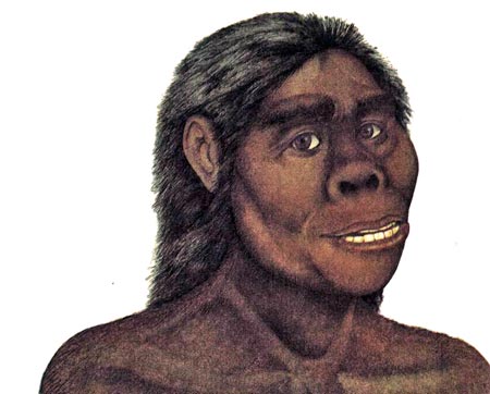 Более разумный вид первобытного человека, Homo erectus,или человек прямоходящий, впервые появился в Африке приблизительно 1,8 млн. лет назад. Он был выше и стройнее, чем Homo habills,но с сильно выдающимися вперед челюстями и массивными надбровными дугами. Способный быстро передвигаться по земле, Homo erectusстал первым гоминидом, покинувшим Африку и отправившимся на север и восток. Его останки найдены в Китае, на острове Ява и в Европе. Пережевывать сырое мясо предкам человека было нелегко, прошли тысячелетия, пока они научились размягчать пищу над огнем. Homo erectusуже готовили на огне.