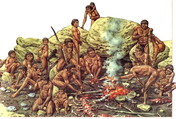 Эти охотники и собиратели постоянно переходили с места на место. По ночам они спали в пещерах либо строили примитивные шалаши из веток и шкур животных. Женские особи собирали дрова для костра. Мужские особи изготавливали каменные орудия, в том числе такие, которыми можно было разделать тушу убитого животного.