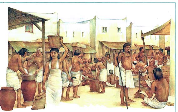 Большинство населения составляли земледельцы, круглый год работавшие на полях, чтобы обеспечить продовольствием города. Буйволы тянули за собой примитивные плуги, вспахивавшие землю и готовившие поля под новые посевы.