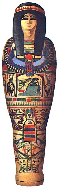Футляр, в котором находилась мумия, украшали изображением умершего, чтобы его душа смогла узнать свое тело в загробной жизни. Тщательно выписанные иероглифы и сцены из Книги мертвых, книги магических заклинаний, должны были помочь мумии на ее пути в загробное царство.
