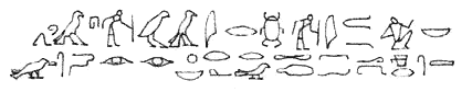Иногда писцам приходилось читать надписи, сделанные иероглифами(вверху) , а затем переводить их в иератическое письмо(внизу).