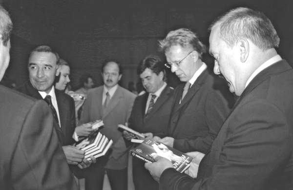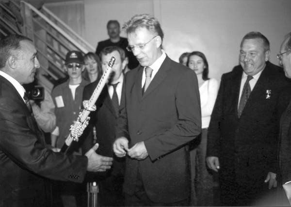 Член МОК Ш. Тарпищев, Герой России В. Шаманов, глава Росспорта В. Фетисов в Ульяновской школе тхэквондо
