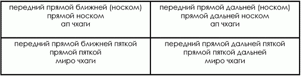 Если учитывать при этом особенности взаимной стойки (табл. 3.3.1), то число вариантов техники выполнения ударов увеличивается вдвое.