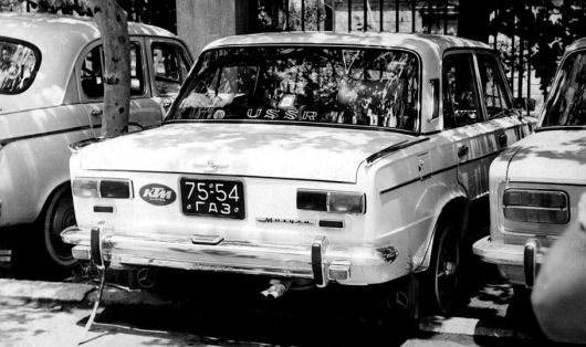 Грузинский вариант «тюнинга» ВАЗ-2101 (1974 год, Тбилиси). Сверкающая вставка под бампером, боковые молдинги от ВАЗ-2103, хромированные законцовки задних крыльев от «Волги» ГАЗ-21. Абсолютно бесполезные накладки на задних стойках от ГАЗ-24 (вытяжной вентиляции тогда ещё и в помине не было). Более нелепую мешанину представить трудно, нохозяин, похоже, такой «эксклюзивной» машиной очень гордился.