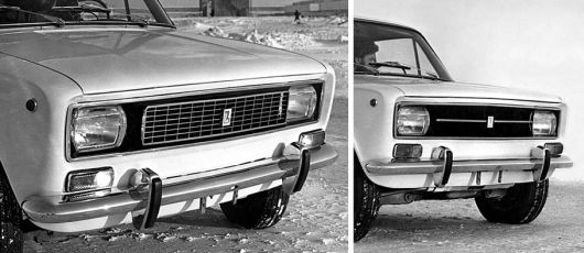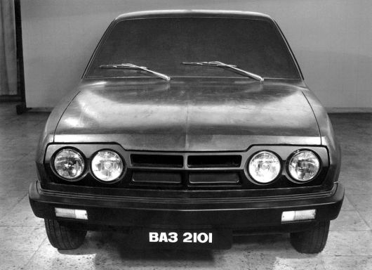 Одна из первых попыток модернизации внешнего облика ВАЗ-2101 с использование м фар от «Москвича» (дизайнеры В. пашко и В. Антипин).