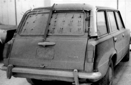 На ВАЗ-2102 очистки стекла задней двери не было (впрочем, как и на его прототипе FIAT-124 Familiare). Все попытки улучшить аэродинамику задка с использованием различного вида спойлеров (на снимке) результата не дали.