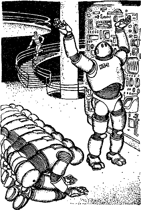Внизу виднелась огромная сверкающая фигура Кьюти, который внимательно следил за дружной работой группы роботов возле одного из блоков марсианского передатчика.