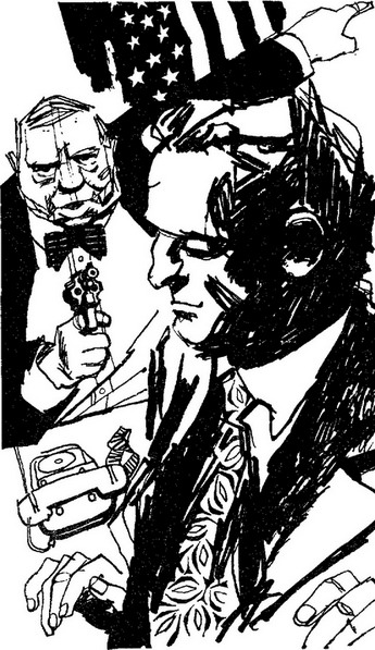 Он подошел к письменному столу, а я повернулся к нему спиной, чтобы запереть дверь на щеколду. Когда же обернулся, то увидел, он уже сидит в кожаном кресле и вовсю улыбается. В пухлой жирной руке он держал пистолет итальянского производства, который глядел на меня черным зрачком.