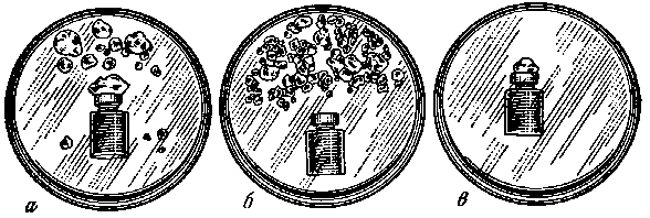 Рис. 11. Кристаллы алюмокалиевых квасцов, выращенные на станции «Салют-5» (а — образцы из кристаллизатора № 1; б — из кристаллизатора № 2; в — из кристаллизатора № 3)