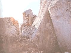 Над всем этим возвышается третий комплекс, находящийся на расколотых скалах. Для меня остается загадкой, как могла прийти кому-то в голову мысль назвать его «Акрополь». Здесь весьма хитроумно использован природный ландшафт: в промежутки между скалами встроены стены, образующие внешнюю стену. Они имеют высоту семь с половиной метров и ширину у основания 6,7 метра. Этот участок Зимбабве имел прекрасные оборонительные возможности, если в данном случае речь идет о крепости.