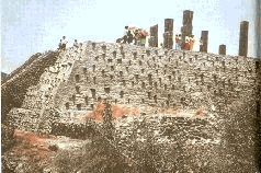 Стилевой контраст между мегалитическим искусством и творениями инков совершенно очевиден. В Мачу-Пикчу имеется строение, именуемое сегодня «Царским Мавзолеем». Оно вытесано в природной скале, и даже семь ступеней, ведущих к Мавзолею, сложены из камней. Это сооружение, имеющее форму конского копыта, считалось главным храмом Мачу-Пикчу. Оно возвышается над тремя мощными каменными глыбами, отколотыми от одной скалы. Эти глыбы имеют высоту в два раза большую, нежели стены, возведенные впоследствии на них инками. Верхняя треть принадлежит инкам, две нижние трети – представителям мегалитической культуры, создавшим Мачу-Пикчу.