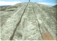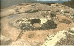 Однако это еще не все. За круглой площадкой, на плоской вершине горы, виднеются всевозможные желобки и маленькие туннели, ведущие к различным бассейнам. А по бокам от сооружения в скальной породе выдолблены какие-то таинственные формы.