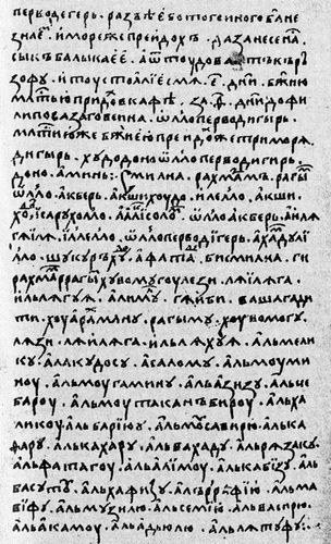 Свою книгу Афанасий Никитин завершает следующими словами. «Милостию же божиею преидохъ же три моря; дигырь худо доно, Олло перводигирь доно, аминь; смилна рахмам рагымъ, Олло акберь, акши худо илелло акши ходо, иса руход ааликсоломъ; Олло акберь аилягяила иллелло, Олло перводигерь ахамду лилло шукуръ худо афатадъ; бисмилна гирархмамъ ррагымъ: хувому-гулези ляиляга ильлягуя алимулъ гяиби шагадити; хуарахману рагыму хувомоглязи ля иляга ильл альмелику алакудосу асалому альмумину альмугамину альаз альчебару льмутаканъ биру альхалику альбариюу альмусавр алькафару клькахару альвахаду альрязаку альфатагу альали алькабизуальбасуту альхафизу алъррафию альмавифу альму лю альсемию альвасирю альакаму альадьюлю альлятуфу. Гирь помози рабу своему» [929], с. 31–32. Фотографию этой страницы из книги Никитина см. на рис. 51.