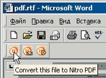 Для быстрого создания PDF-файла (вернее, конвертирования офисного документа в PDF-формат) предусмотрены три кнопки и дополнительный пункт меню Nitro PDF в интерфейсе приложений MS Office. После установки программы кнопки расположатся в левом верхнем углу интерфейсов Word, Excel и Power Point. В большинстве случаев достаточно воспользоваться кнопкой Convert this file to Nitro PDF ( рис. 17 ):