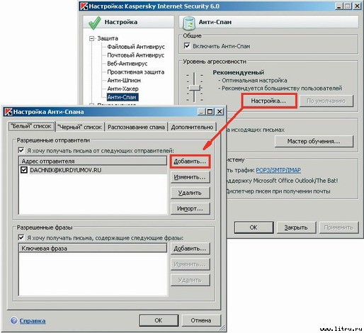 23 Настройки «Анти-Спама», скрывающиеся под одноименной кнопкой Outlook Express, и настройки данного модуля в программном окне — разные.