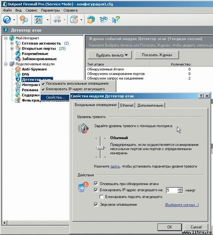 или портов с определенными номерами. Нет смысла выставлять максимальный уровень тревоги, иначе сетевая активность системы или вполне легитимной программы доставит вам массу хлопот.