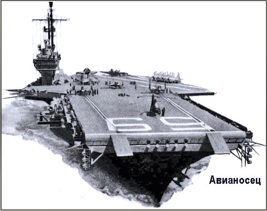 Авианосец — плавающий аэродром, целый плавающий город. На самых больших авианосцах несколько тысяч человек экипажа. Почти на всех авианосцах стоят для защиты от самолетов противника зенитные ракеты.