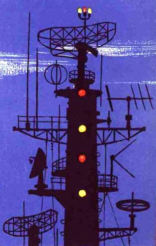 Мы живем в век радио. Для военных кораблей радио — это и уши, и глаза, а порой и единственная ниточка, связывающая участников боя. Вот почему над штабным кораблем — лес антенн. Здесь их не десятки, а сотни. Кроме радиолокационных, тут антенны радиопередатчиков, радиоприемников.