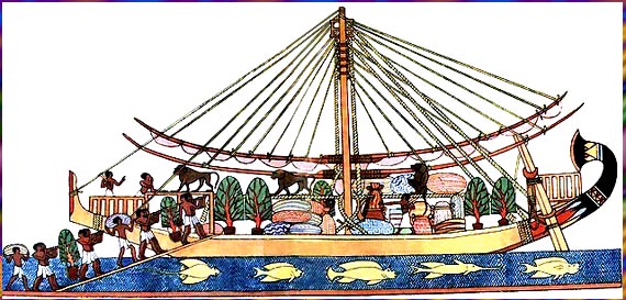 Египетский корабль. Далеко уходили мореходы на таких кораблях от страны пирамид. Некоторые ученые считают, что ветер и течения могли занести корабль египтян даже в Центральную Америку.