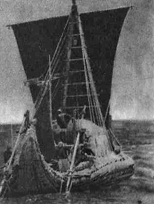 Для того чтобы проверить такое предположение, норвежец Тур Хейердал построил в Египте из тростника-папируса лодку и на ней с горсткой храбрецов пустился в плавание. Пассатное течение подхватило лодку и понесло через океан. Волны разрушили ее, и только год спустя плавание удалось успешно повторить.