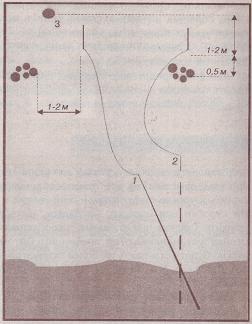 Теперь, не вставая с сиденья, слепите необходимое количество шаров прикорма и «положите» их на выбранные рубежи ловли. Тактика подачи прикорма зависит от конкретных условий ловли (глубина, течение, рыба и др.), но общие принципы видны из рис. 14.