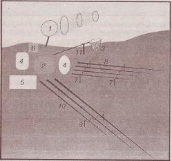Рис. 15. План расположения снастей на берегу при обычной ловле: