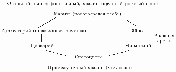 Это болезни, возбудителем которых являются черви класса трематоды, или сосальщики. Цикл развития трематод представлен на схеме 1.