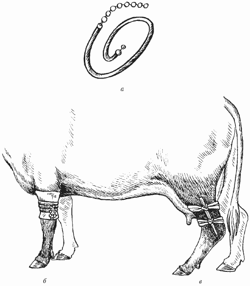 Во всех случаях следует помнить, что жгут накладывают на 1–2 ч (зимой на 1 ч). Животное в течение этого времени должно быть осмотрено ветеринарным врачом. Если это невозможно, жгут снимают, делают перерыв на 3–5 мин и снова накладывают, но немного выше предыдущего места.