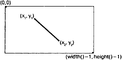 где (x1, y1) задает положение одного конца линии и (x2, y2) задает положение другого конца линии. Существует перегруженный вариант функции, которая принимает два объекта типа QPoint вместо четырех целых чисел.