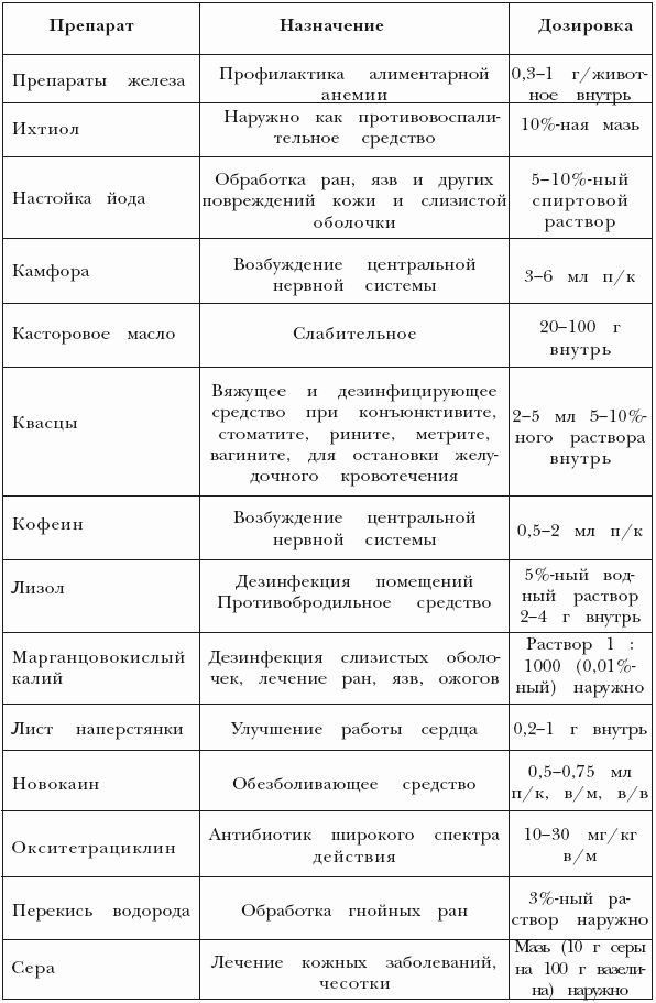 Для оказания пострадавшему или заболевшему животному первой доврачебной помощи в хозяйстве необходимо иметь ветеринарную аптечку. В состав аптечки должны входить инструменты, перевязочный материал и лекарственные средства (табл. 7).