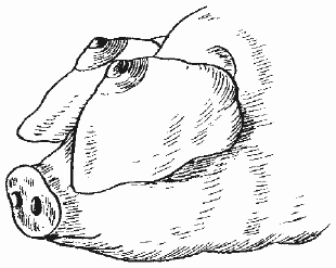 Инкубационный период пастереллеза составляет от нескольких часов до 2-3 сут, иногда дольше. Течение болезни сверхострое, острое, подострое и хроническое. У свиней чаще протекает как осложнение других вирусных и бактериальных заболеваний. При остром течении температура тела повышается до 41-42 °С, наблюдаются озноб, слабость, потеря аппетита, учащенное дыхание, пневмония (одышка, истечения из носа, синюшность слизистых оболочек, носового зеркальца и ушей, позднее и нижней части живота). Животные принимают позу сидящей собаки (рис. 27).