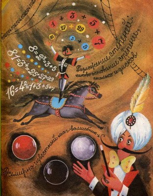 Жонглёра сменили воздушные гимнасты. Они тоже делали несколько дел сразу: кувыркались под куполом и заодно показывали действия с обыкновенными дробями. Это было красивое зрелище. Под звуки «Лунного вальса» разноцветные прожекторы выхватывали из темноты стройные фигуры в светящихся костюмах, на которых всякий раз вспыхивали другие числа. Воздушные дроби преображались на глазах: делились, умножались, сокращались, менялись числителями и знаменателями.