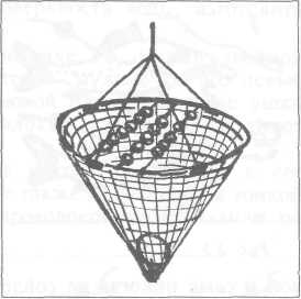 Это проволочное кольцо диаметром 60–70 см с сеткой. В сетке на дне привязан груз, на кольце сверху три тонких медных прутика, на которые нанизываются кусочки хлебной корки. Прутики одним концом закрепляются на кольце. Тонкий прочный шнур крепится на поводках, его длина регулируется по глубине водоема.