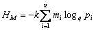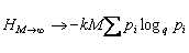 где Hi – количество информации, связанное с i-ой буквой алфавита, pi – частота встречаемости этой буквы в данном языке, q - основание логарифмов, а k – коэффициент пропорциональности, величина которого зависит от q и от избранных единиц измерения количества информации; знак "минус" перед k поставлен для того, чтобы величина Hi всегда была положительной. Тогда суммарное количество информации для сообщения, состоящего из М букв, будет (7):