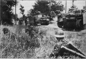Интересно отметить, что в этих боях мобильные колесные бронемашины из дивизионного разведывательного батальона были использованы для прикрытия мощных «Тигров» 102-го тяжелого танкового батальона СС.