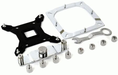 Что касается сборки вообще, то на странице продукта есть флэш-мультик, наглядно и понятно иллюстрирующий, как один за другим устанавливаются бэкплейт и другие элементы. Как можно видеть, для обеспечения совместимости с тремя сокетами (LGA1366, LGA1156 и LGA775) производитель предложил изящное решение — сдвигать трёхпозиционный фиксатор. Тем самым и на материале сэкономлено, и нам меньше мороки.