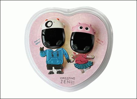 Встречаются в продаже и музыкальные плееры в виде сердечка — правда, в большинстве своём они выпущены в КНР и имеют соответствующее самым высоким низким китайским стандартам качество. Но есть и исключения. Скажем, компания Creative к 14 февраля предлагает спецверсию своего мегаплеера ZEN Moo — того самого, который выполнен в виде головы маленькой мультяшной коровы. В новый комплект входят сразу два «говяжьих» проигрывателя (стало быть, для молодого человека и его дамы), а их упаковка напоминает сами видите что.