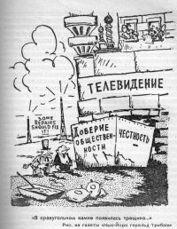 Американское телевидение популяризировало гастроли коллективов советских артистов в США, но с особым удовольствием оно показывает советскую жизнь как бы из подворотни, советские города, отснятые с черного хода. Пена «холодной войны» постоянно пузырится на американских телевизионных экранах.