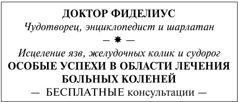 Доктор Фиделиус вышел на сцену и воззвал к зевакам, театрально указывая на свой плакат: