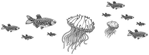 Даже его жабры замерли, хотя она думала, что иначе он не может дышать. Он смотрел на ее руку на своей. Потом что-то едва заметно шевельнулось. Тонкие мембраны на его шее, которые она до этого принимала за часть жабр, начали трепетать. Это было почти красиво. Едва заметный трепет, словно шелковые оборки.