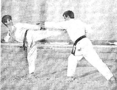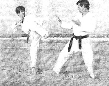 Начав с текучих техник, вы определенным образом настраиваете своего противника. После того как он увидит несколько ваших комбинаций, он поймет ваш стиль и сможет предугадывать, откуда будет направлена следующая техника. Когда вы почувствуете, что он готовится к контрдействиям, переходите к отскакивающему методу. Ваша вторая техника должна достичь цели, поскольку она будет направлена с неожиданной стороны. Опять же, как в предыдущем примере, ваш противник ожидал, что за вашим ударом мавасигэри