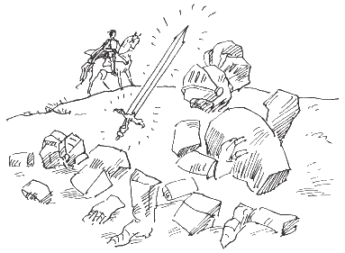 Великаны бросились врассыпную. Но сверкающий меч повсюду настигал их. Мгновение, и меч вырвался из рук принца. Он сам врубился в толпу каменных великанов, как будто его держала чья-то могучая невидимая рука.
