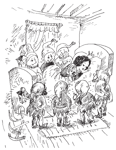 С сочувствием выслушали гномы печальную историю Белоснежки.