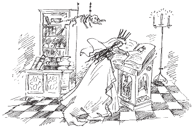 – Только не хватает, чтоб ты простудилась, милая дочурка! – притворяясь сердитым, проворчал король Унгер. – Сядь поближе к огню. А ты, мой верный паж Гримли, принеси кубок славного вина своему старому королю!