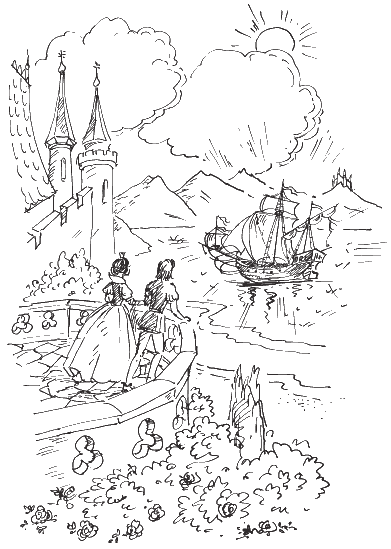 – Ах, милая дочурка, – с укором воскликнул король Унгер, обнимая Белоснежку, – что за новые проказы! Уплыть на корабле «Мечта» неведомо куда. И даже ни слова не сказать своему старому отцу. Право, какая беспечность и легкомыслие! Впрочем, главное – ты снова здесь, на твёрдой земле. Эрлинда, милая малышка, подойди ко мне, я тебя поцелую. И как вам понравилось путешествовать на корабле «Мечта»? Но что это! Где же он?